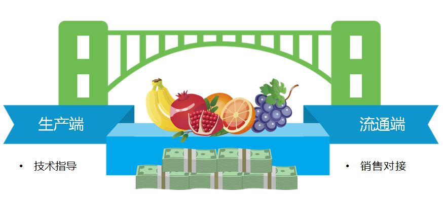 幫助基地對接豐富渠道資源,根據產品品質等級匹配銷售渠道。此外,無縫對接優果聯交易平臺,實現產業資源的協同對接,幫助基地打通市場銷售、金融貸款及保險和農資供應銷售等渠道。