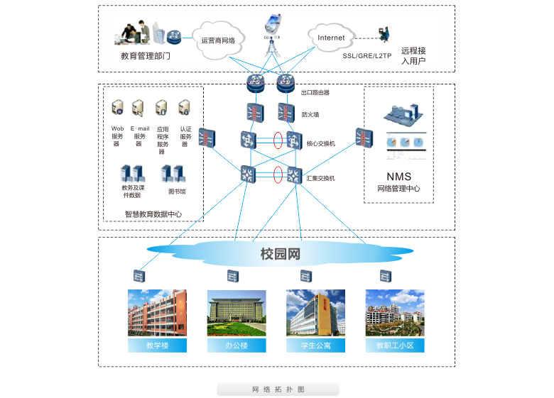 智慧教育是以數字化信息和網絡為基礎,在計算機和網絡技術上建立起來的對教學、科研、管理、技術服務、生活服務等校園信息的收集、處理、整合、存儲、傳輸和應用,使數字資源得到充分優化利用的一種虛擬教育環境。通過實現從環境(包括設備,教室等)、資源(如圖書、講義、課件等)到應用(包括教、學、管理、服務、辦公等)的全部數字化,在傳統校園基礎上構建一個數字空間,以拓展現實教育的時間和空間維度,提升傳統教育的管理、運行效率,擴展傳統校園的業務功能,最終實現教育過程的全面信息化,從而達到提高管理水平、提升就業率的目的。