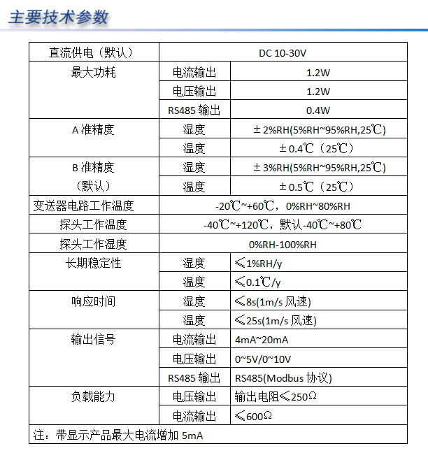 本溫濕度變送器采用PE高分子濾芯溫濕度傳感器護套,PE材料防塵效果優良,外層尼龍護罩有效保護內部濾芯,溫濕度傳感器與殼體直接相連外觀美觀大方。由于透氣孔徑小造成靈敏度降低,不適合要求高靈敏度的場合。輸出信號類型分為RS485\4-20mA\0-5V\0-10V等。詳見選型表。