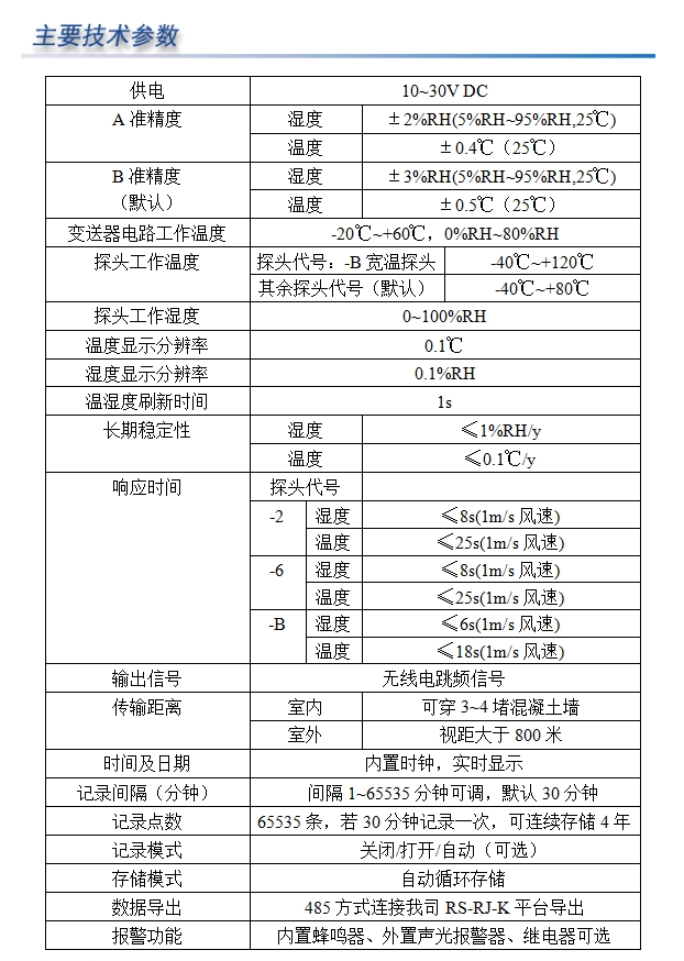 本產(chǎn)品采用外置防水溫濕度傳感器,溫濕度傳感器的PE濾芯防塵效果明顯。本公司獨(dú)有的防水處理工藝徹底的解決了溫濕度傳感器凝露狀態(tài)壽命短的問題。本溫濕度傳感器即使帶電狀態(tài)放入水中長時(shí)間浸泡也不會(huì)損壞。由于透氣孔徑微小造成檢測(cè)靈敏度降低,此種溫濕度傳感器不適合高靈敏度場(chǎng)合。