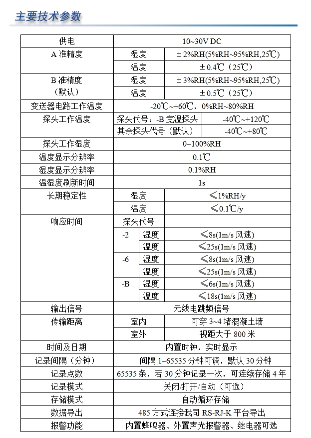產品是一款大屏液晶顯示無線通信并帶自身記錄的溫濕度測點。產品采用我司獨有的無線擴頻技術,通信距離遠,視距可達800米,穿透能力強,可穿透3~4堵混凝土墻,獨有的跳頻技術,通信抗干擾能力強。
