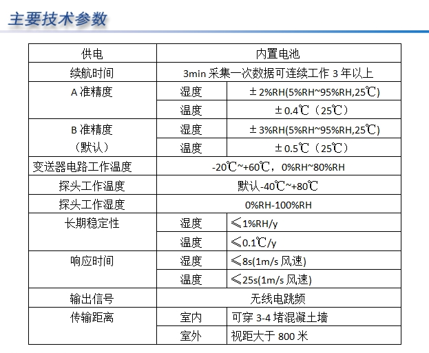 本溫濕度變送器是公司歷時2年開發的一款高品質無線采集終端。充分考慮惡劣現場環境和現場實施情況,成功解決了同類產品的固有不足。實現了超長距離(視距800m以上)、超小體積(110*85*44mm)、超長續航能力(內置電池,若3分鐘采集一次,一次充電可連續采集3年以上)。現場實施方便,終端地址可自由配置,數據直接傳入RS-XZJ-100-W匯集主機或RS-JQS經濟型無線接收器,由接收機統一進行數據存儲、上傳、報警等后續處理。詳見選型表。