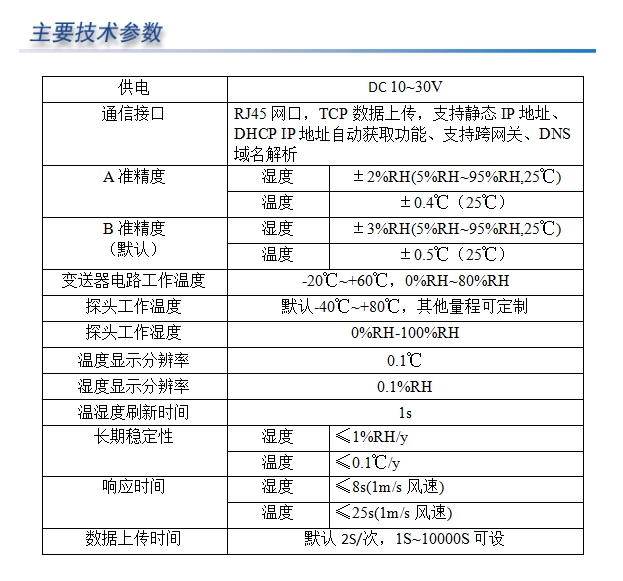 產(chǎn)品是工業(yè)級以太網(wǎng)型溫濕度變送器,可采集溫濕度數(shù)據(jù)并通過以太網(wǎng)方式上傳到服務(wù)器。本系列產(chǎn)品充分利用已架設(shè)好的以太網(wǎng)通訊網(wǎng)絡(luò)實現(xiàn)遠距離的數(shù)據(jù)采集和傳輸,實現(xiàn)溫濕度數(shù)據(jù)的集中監(jiān)控。可大大減少施工量,提高施工效率和維護成本。