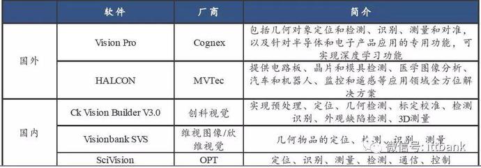 從技術壁壘來看,1)軟件是主要壁壘,底層算法庫是核心。目前是外資企業壟斷,做得好例如康耐視以及MVTec,主要是靠國外幾十年的自動化進程培養起來的;國內自動化進程時間不長,軟件算法還多處于研發階段,應用做得好的不多,2)應用層面的技術也非常關鍵,主要是要掌握不同應用環境的Know-How,做出適應性的產品。