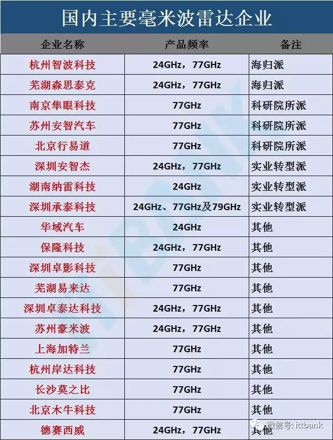 中國第一批做毫米波雷達的創業企業,大多都成立在2014-2016這幾年,團隊往往是科研背景、軍工背景、或供應商跳槽創業背景。比如海歸派:森思泰克、杭州智波??蒲性核桑盒幸椎?、南京隼眼、蘇州安智、蘇州豪米波。實業轉型派:深圳安智杰、深圳承泰、湖南納雷。還有依萊達、德賽西威、木牛、雷博泰克、深圳卓影等。