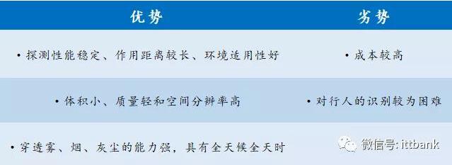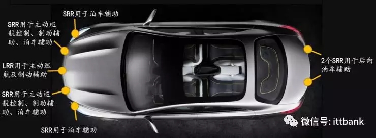 24GHz與77GHz毫米波雷達兼備于ADAS的長短距檢測。毫米波雷達因其硬件體積小,且不受惡劣天氣影響,被廣泛應用在ADAS系統之中。24GHz目前大量應用于汽車的盲點監測、變道輔助。雷達安裝在車輛的后保險杠內,用于監測車輛后方兩側的車道是否有車、可否進行變道。77GHz雷達在探測精度與距離上優于24GHz雷達,主要用來裝配在車輛的前保險杠上,探測與前車的距離以及前車的速度,實現的主要是緊急制動、自動跟車等主動安全領域的功能。完全實現ADAS各項功能一般需要“1長+4中短”5個毫米波雷達,奧迪A8搭載5個毫米波雷達(1LRR+4MRR),奔馳S級搭載6個毫米波雷達(1LRR+6SRR)。目前77GHz的毫米波雷達系統單價在1000元左右,24GHz毫米波雷達單價在500元左右。