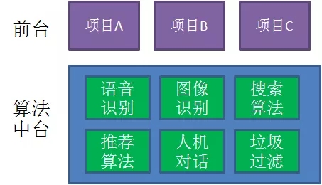 算法中臺,為各個項目提供算法能力,比如推薦算法、搜索算法、圖像識別、語音識別等等: