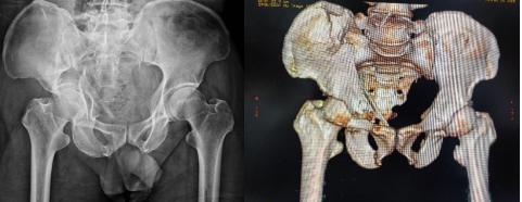 患者林某,因高能量損傷導致髖臼骨折,骨折塊粉碎并移位,量大且復位固定操作異常艱難。傳統的內固定手術時間長、風險高,對于患者來說,不僅康復周期長,還可能面臨較高的并發癥風險。